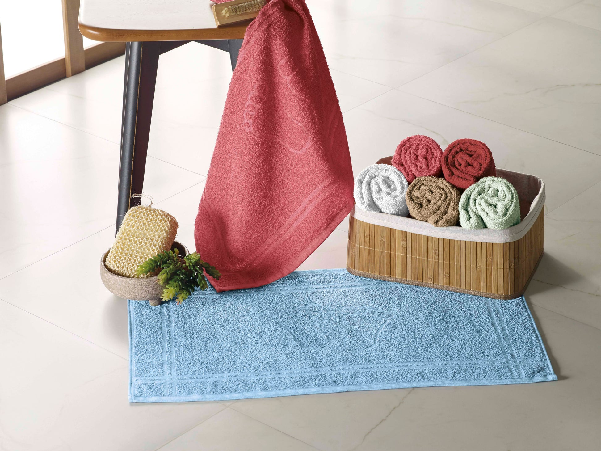 Feito em 100% algodão, com gramatura de 400 g/m², oferece absorção eficiente, toque suave e conforto para os pés — tudo isso aliado a um design simples e alegre, disponível em diversas cores para deixar o ambiente mais vibrante e acolhedor.